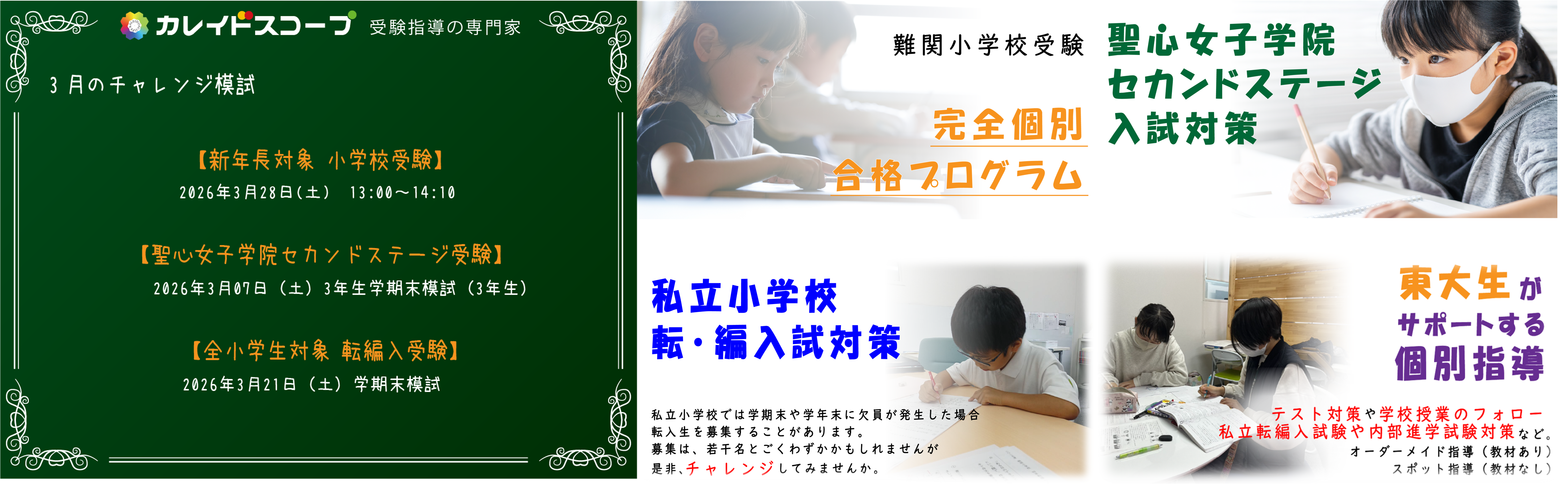 各年齢に合わせたカリキュラムや、お子様の学力を見ながら授業を行う完全個別指導など、